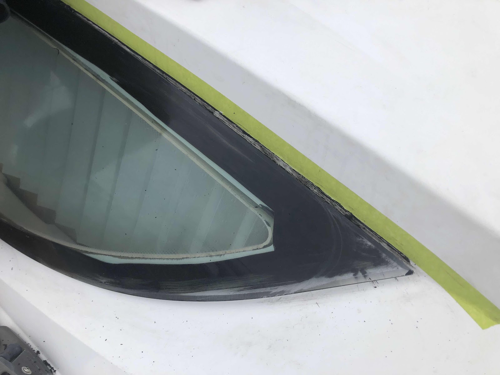 Some masking and caulking removal around our side windows was begun. Then we had to cover the area over with black sheet plastic to stem the rain ingress. The windows had become leaky which was why we were undertaking the project in the first place.
